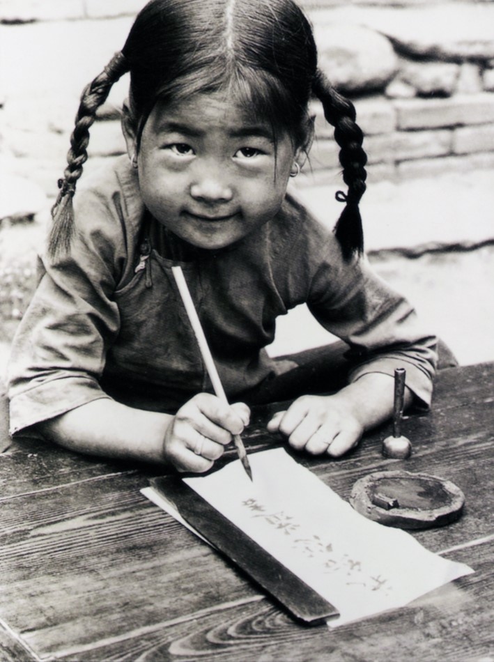 作品表现了一个女童习字的场景,映射出民国时期对于女子教育的接受和认可。摄于20世纪20年代。张洪杰供图。
