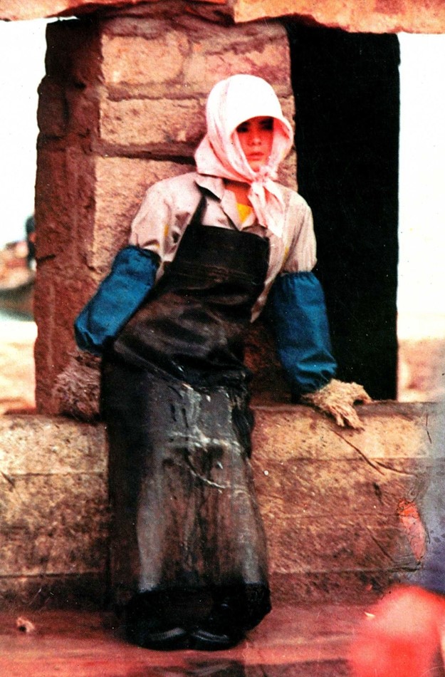 作品发表于1983年,这是一幅富有个性特征的人物肖像之作。这位年轻妇女,身着胶布围裙,头戴纱巾罩,手扶墙沿,依势小憩。她神态自若,端庄而俏俊的面庞在纱巾罩下藏而有露、露而有蔽,显得含蓄和朴实无华。于春华摄。《山东画报》提供。