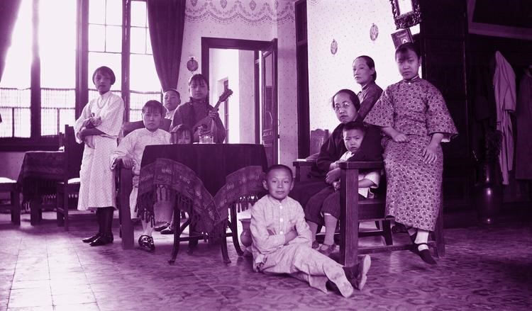 清末民初女性多以传统良母形象出现在家庭合照中。这不仅是因为当时情境下的“母亲”形象还更多属于家庭生活而非社会生活的范畴,也是因为当时正处于中西、新旧文化互相碰撞的节点,摄影师们多关注家庭、日常生活、民俗场景,将其作为典型的“东方化”民族身份和文化认同的例证。