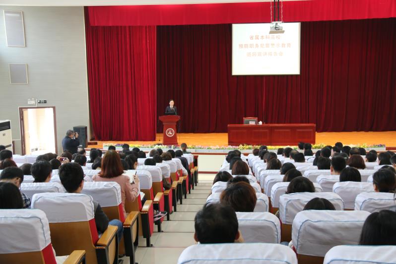 10月21日上午,按照省委关于反腐倡廉建设的部署要求,山东省委高校工委与省检察院共同组织开展的省属本科高校预防职务犯罪警示教育巡回宣讲活动在我校举行。省检察院职务犯罪预防处处长秦喜迎、王德海及宣讲团成员仉丽莉、郑廉洁、李稚、孙令忠等出席宣讲会,全校副科级以上领导干部160余人参加报告会。会议由党委书记郭翠芬主持。