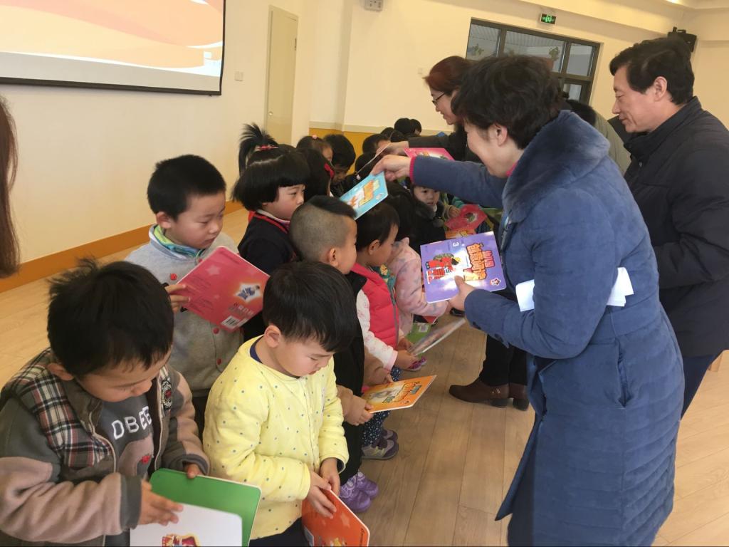 仪式上,贺兴利及相关负责人向小朋友们分发了图书。在幼儿园园长和老师的带领下,幼儿园的小朋友们有秩序地走上大厅讲台,有礼貌地向到园的老师们问好。校纪委专职纪检员、图书馆原馆长朱海琳代表图书馆向小朋友们问好,为小朋友们介绍图书情况。拿到心爱书籍的小朋友们,或蹲或坐,立即兴致勃勃地阅读起来。