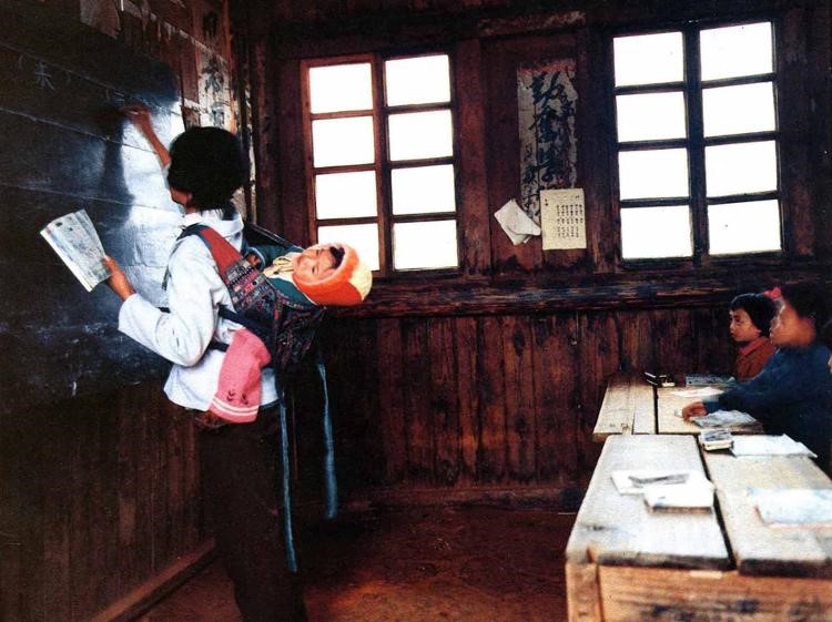 或者说,这是一位不得不背着孩子去教书的年轻妈妈,但她也是很多很多学生的“妈妈”……解海龙摄,《山东画报》提供。