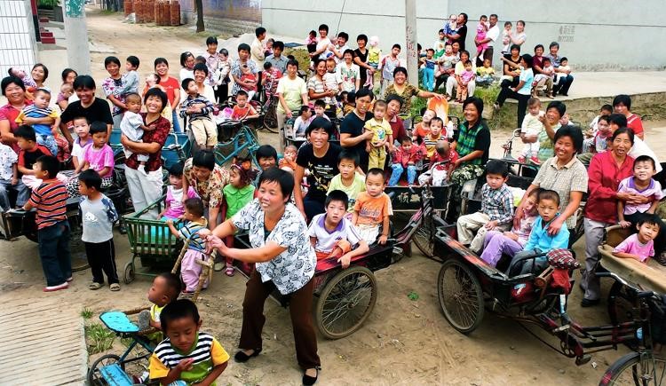 2007年,山东省济南市历城区唐王镇纸坊村被济南市社会福利院定为孤残儿童康复寄养基地,村里240户村民,仅寄养家庭就有46户,截至目前已有92名脑瘫儿童先后在这里找到自己的“家”。平时,孩子们吃住在“家”里,每天由认养的家长送到村头的康复基地和6个“家庭康复小组”接受专业人员的教育和康复训练。鲁少河摄。