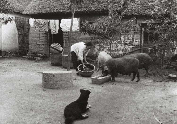 母亲靠养猪的收入,是家庭主要的经济来源。李百军1977年摄。