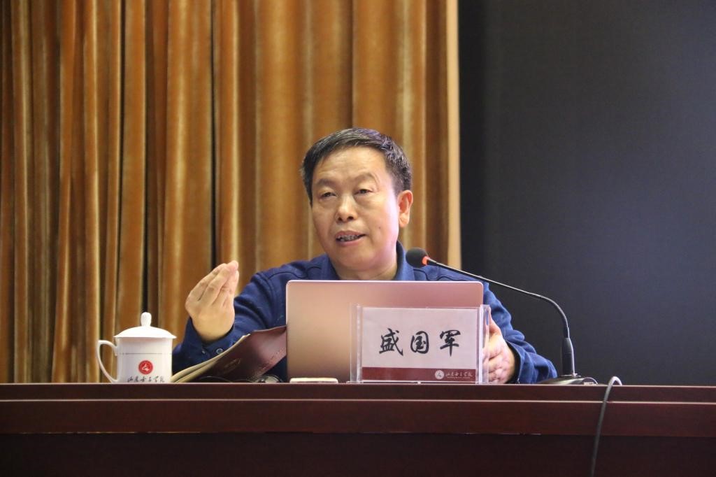 盛国军围绕人生观的含义及特点,科学人生观对于大学生成长成才的意义,摒弃错误的人生观,衡量人生价值的尺度四个方面,从哲学、教育学、经济学等多学科维度,用渊博的知识、系统的理论和生动的事例,阐述了科学人生观的丰富内涵和重大意义。青年学子如何树立科学的人生观并努力成长成才?盛校长给出四点建议和期望:一是要保持积极阳光的心态,自觉处理好个人与家庭、与学校、与社会的关系;二是要坚持以马克思主义为指导,树立以集体主义为核心的人生观,正确处理个人利益与集体利益的关系,全心全意为人民服务、为国家和社会服务;三是要摒弃享乐主义、拜金主义和利己主义等错误观念,树立崇高的精神追求;四是要把对他人、对社会、对国家的贡献大小作为衡量人生价值的唯一尺度,做内心充实、专业扎实、积极向上的社会主义建设者和接班人。