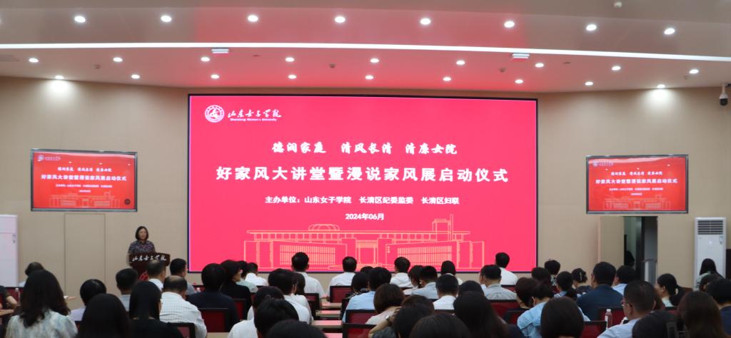 为深入学习贯彻习近平总书记关于注重家庭家教家风建设的重要论述精神,推动党员干部重视家庭建设,以良好家风推进全面从严治党向纵深发展。6月14日上午,学校与长清区纪委监委、区妇联联合开展“德润家庭 清风长清 清廉女院”好家风大讲堂暨漫说家风展活动。学校党委副书记龙希利,省社科联原一级巡视员张宏明,山东管理学院党委委员、纪委书记、监察专员王兴盛,长清区政协副主席刘福云,长清区大学城党工委委员纪检监察工委书记商政,长清区纪委常委、区委巡察办主任王道水,长清区妇联党组书记、主席张丽出席启动仪式并观展。活动由校纪委书记、监察专员杨恩红主持。
