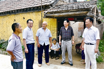 图为陈新宁(左二)在司马镇包村工作期间走村入户了解民意。